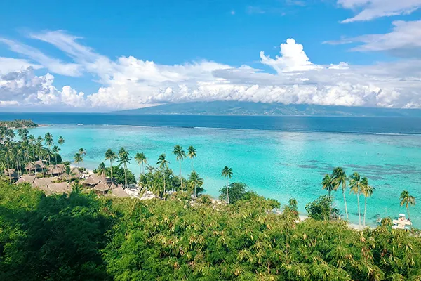 MOOREA - Proprio di fronte all’isola di Tahiti da cui dista 10 minuti di volo oppure 45 minuti in traghetto. Un “must” per qualsiasi itinerario in Polinesia Francese per la sua varietà di paesaggi e di attività: valli verdissime dove un tempo si coltivava la vaniglia, coste frastagliate orlate da spiagge bianche e protette da un anello di corallo che delimita il verde della laguna; gli ambienti ideali per alternare alla spiaggia, escursioni in fuoristrada, in quad, attività sportive, gite culturali e immancabili tours per negozi di souvenirs. Case dal color pastello immerse in giardini di ibisco e fiori esotici, adornano l’isola come una collana di perle autentiche. Da ciascun albergo è possibile prenotare passeggiate a cavallo, gite in barca, tour dell'isola, visite alle fattorie delle perle, escursioni in elicottero o in aereo. È possibile visitarla facilmente sia in motorino che in auto. Il Tiki Village rappresenta un'esperienza interessante per conoscere le tradizioni locali ed è la ricostruzione di un vero e proprio villaggio polinesiano popolato da alcune famiglie che vivono mantenendo gli usi e i costumi degli avi. La bellezza di Moorea è indimenticabile!