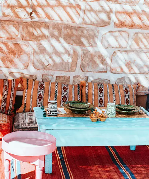 Durante il vostro soggiorno, organizzate cene romantiche sotto le stelle. Molti riad e hotel di lusso offrono la possibilità di cenare sulla terrazza, con vista panoramica sulla città o sul deserto, mentre gustate piatti tipici come il couscous o il tagine.